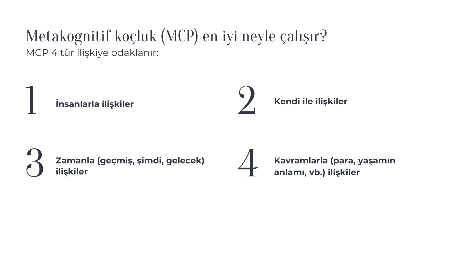 - MCP, duygular, düşünceler, davranışlar ve çocukluk dönemindeki programlarla çalışır.