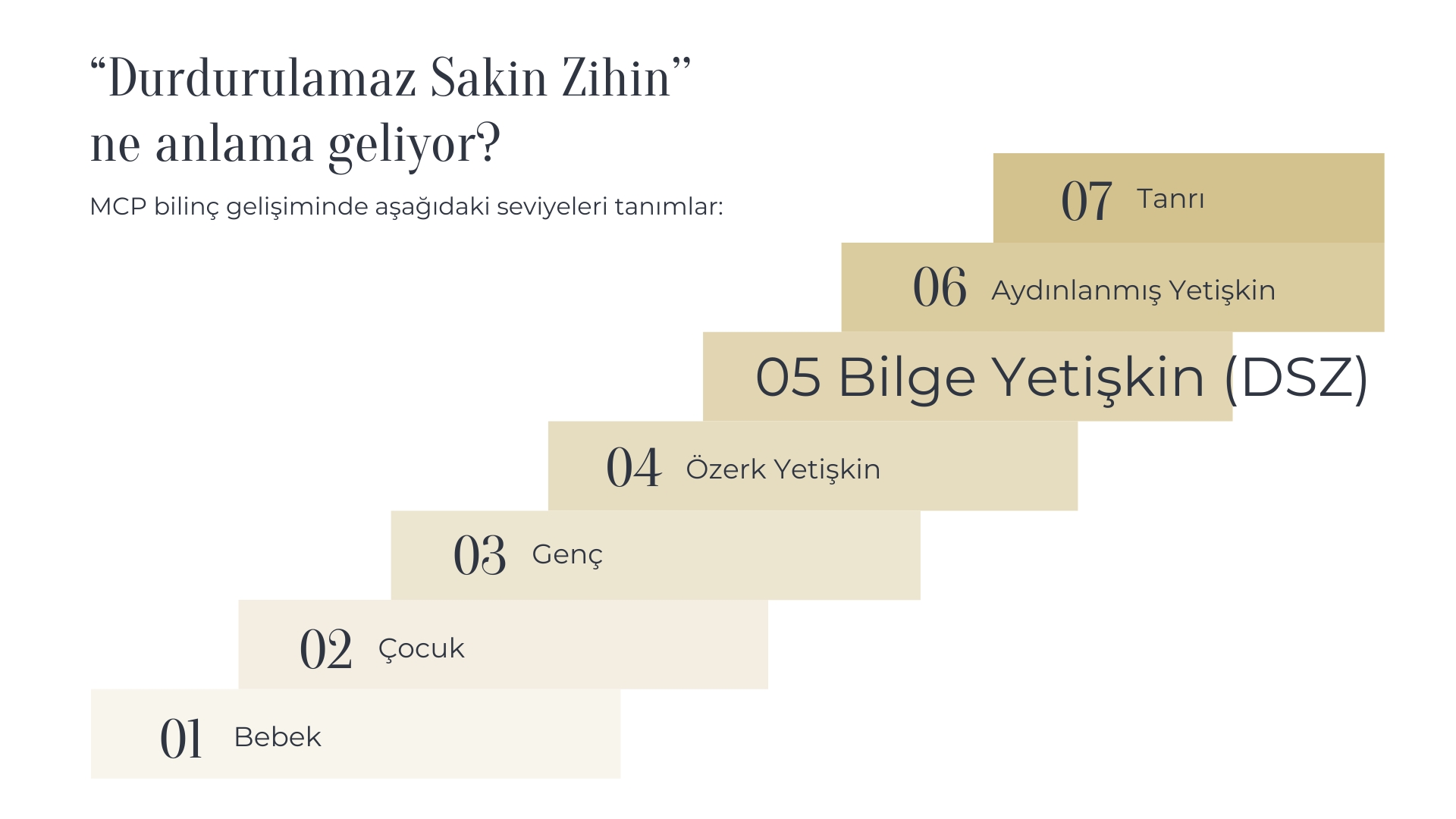 Bilge yetişkin (DSZ) kendi programlarını görür ve düşünceleri, duyguları ve davranışları ile olan ilişkisi için sorumluluk alır. Kendisini, kendi yeni benlik tasavvuruna göre yeniden yazmaya başlar. Bu aşama, insan deneyimine (psikoloji, siyaset, ekonomi) derin bir anlayış ve başkalarını kendi deneyimleriyle yönlendirme yeteneği ile karakterizedir. (Not: Akademimizde sertifikalı koçlar, en azından bu aşamada bulunmaktadır.)
