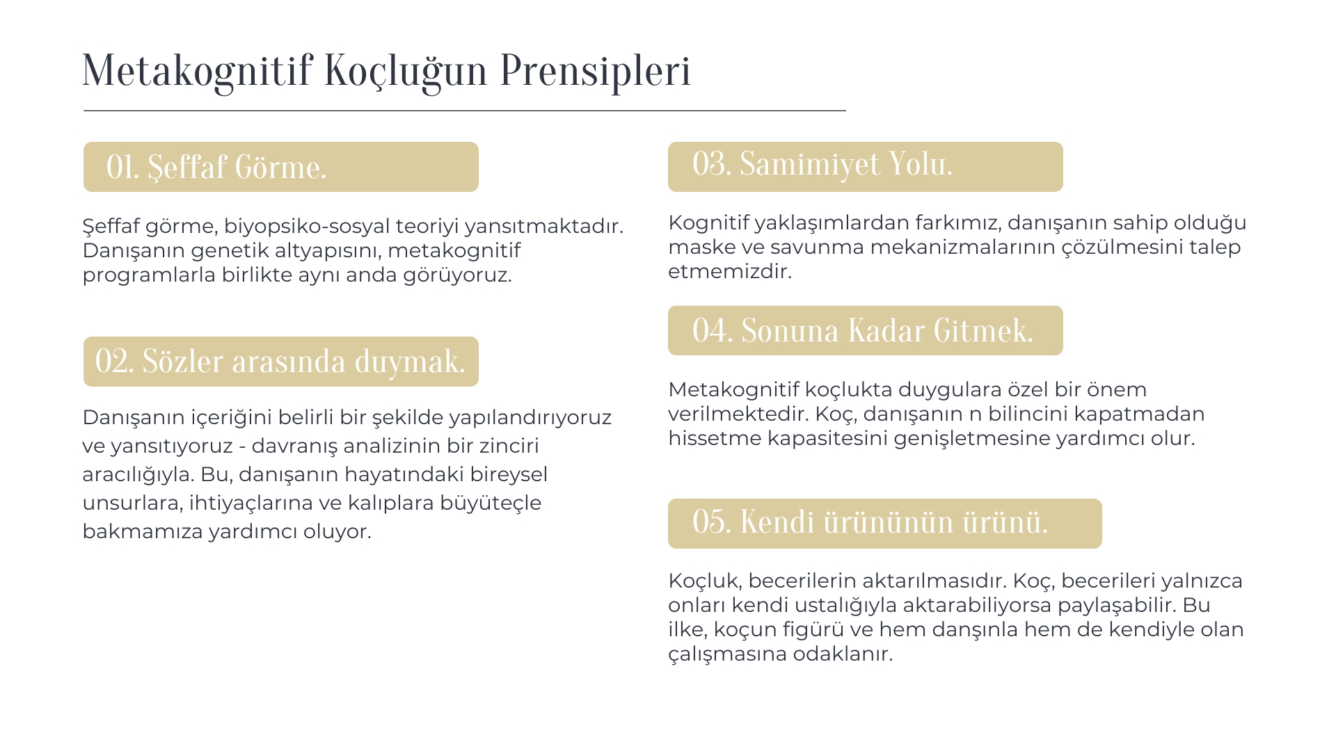 - Bazı kavramları şematik terapi ile paylaşmaktayız (Young ve diğerleri, 2003). Örneğin, temel ihtiyaçlara dayanarak, şemaları metakognitif programlar olarak adlandırıyoruz, modları ve başa çıkma yöntemlerini ise tepkiler olarak görüyoruz.